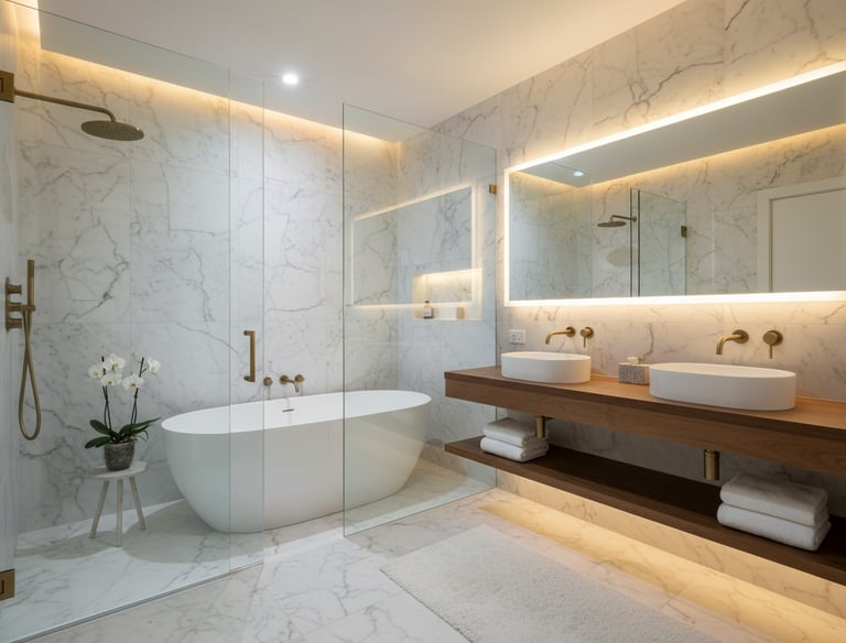 Walk-in showers, soaking tubs, luxury tile, and spa-style vanities. We turn outdated bathrooms into personal retreats — on time and on budget.