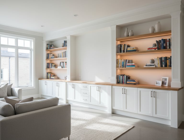 Built-ins, crown molding, custom trim, shelving, and millwork — crafted and installed by hand to fit your space and personal style perfectly.